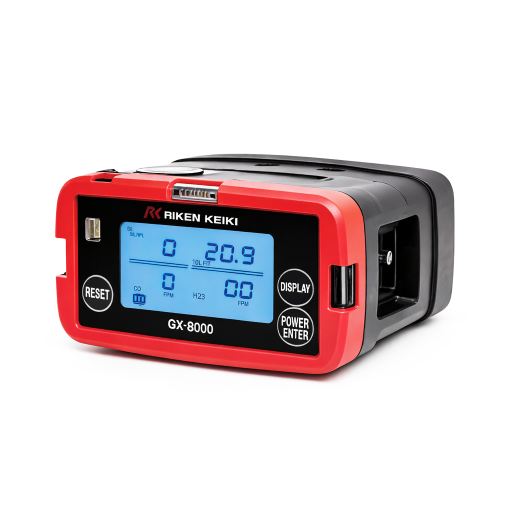 Bomba motorizada para muestreo remoto que se acopla a los monitores RKI GX-3R y GX-3R Pro. Funciona con una batería AA, ofrece hasta 10 horas de operación (o 16 h en modo ECO), detecta flujo bajo y puede utilizar mangueras de hasta 30 m (100 ft) para acceder a espacios difíciles.