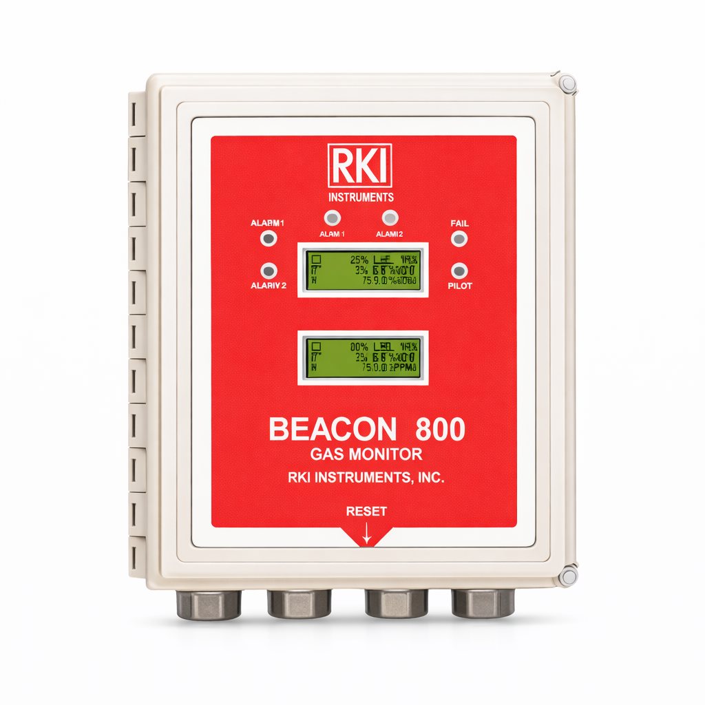 Controlador Modbus de 64 canales capaz de gestionar hasta 64 sensores RKI mediante RS-485. Ofrece relés configurables, pantalla LCD gráfica, indicadores de estado y gabinete NEMA 4X resistente, ideal para sistemas amplios de monitoreo de gases en entornos industriales.