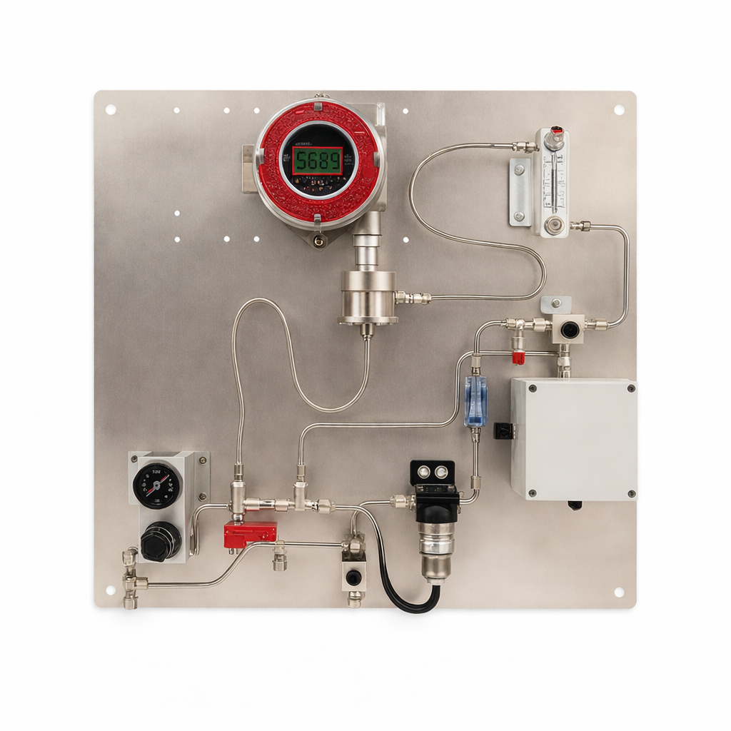 Unidad de muestreo diseñada para entornos extremos, que aspira la muestra desde hasta 100 pies de distancia, condensa y filtra el gas antes de pasarlo por uno o dos sensores, e incluye control de flujo para detección de obstrucciones o interrupción de aire comprimido.